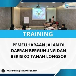 Pelatihan Pemeliharaan Jalan di Daerah Bergunung dan Berisiko Tanah Longsor merupakan program yang dirancang untuk membekali peserta dengan kemampuan mengelola, memelihara, dan meningkatkan keamanan jalan di wilayah berbukit dan rawan longsor. Pelatihan ini mencakup identifikasi kondisi jalan dan risiko tanah longsor, teknik pemeliharaan preventif dan korektif, penggunaan metode konstruksi yang aman, serta strategi mitigasi bencana untuk memastikan keselamatan pengguna jalan. P